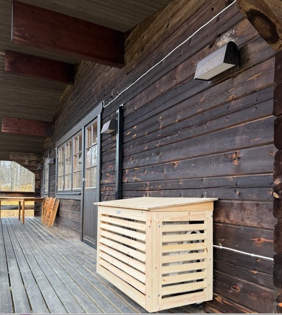 På bilden är lådan inte målad utvändigt, den kommer att få samma färg som husväggen när vi är klara.